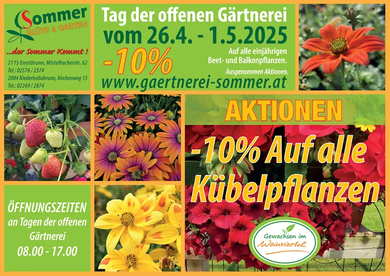 Ob kunstvolle Floristik, professionelle Gartengestaltung oder kräftige Jungpflanzen und Stauden – die Gärtnerei Sommer steht für Qualität, Regionalität und Erfahrung. Besuchen Sie uns und wählen Sie aus einer großen Auswahl saisonaler Pflanzen.